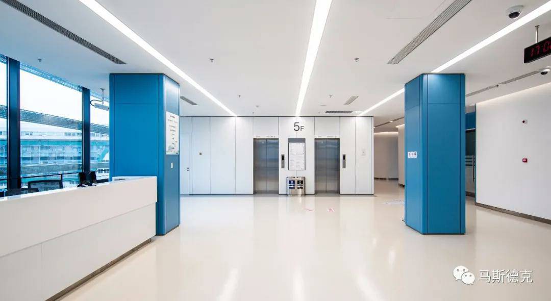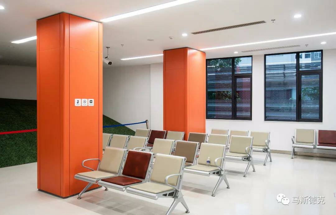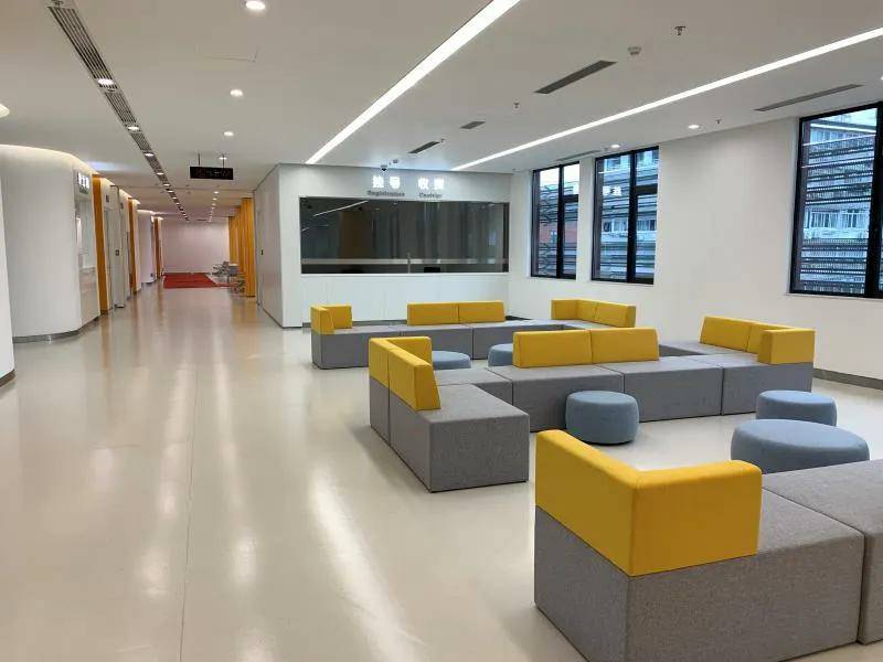 太原学岺资源开发有限公司在上海徐汇区⽛防所医疗空间解决⽅案中,装配了集成墙⾯、防⽕玻璃隔断、钢质门,从空间功能、空间尺度和空间动态等⽅⾯满⾜医疗环境使⽤要求。 同时,不同楼层采⽤多样化的⾊彩空间,让医疗空间有更多温暖。